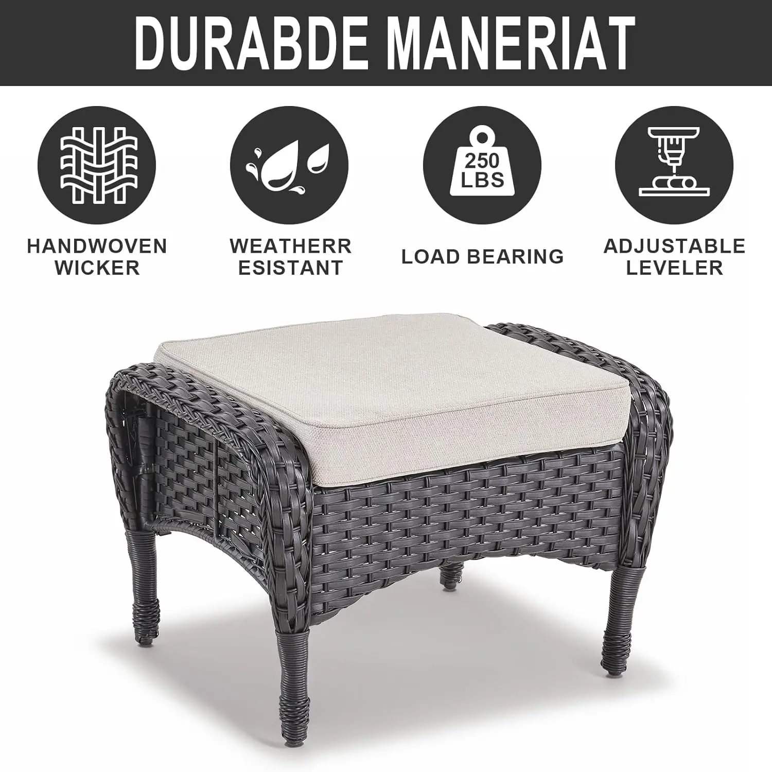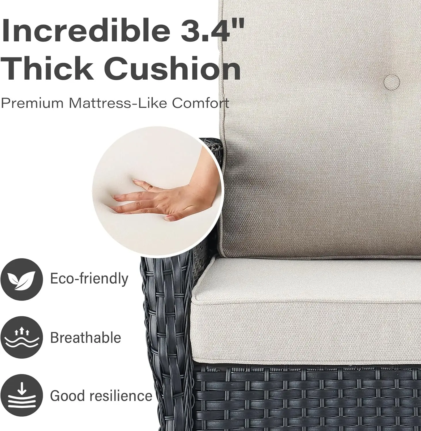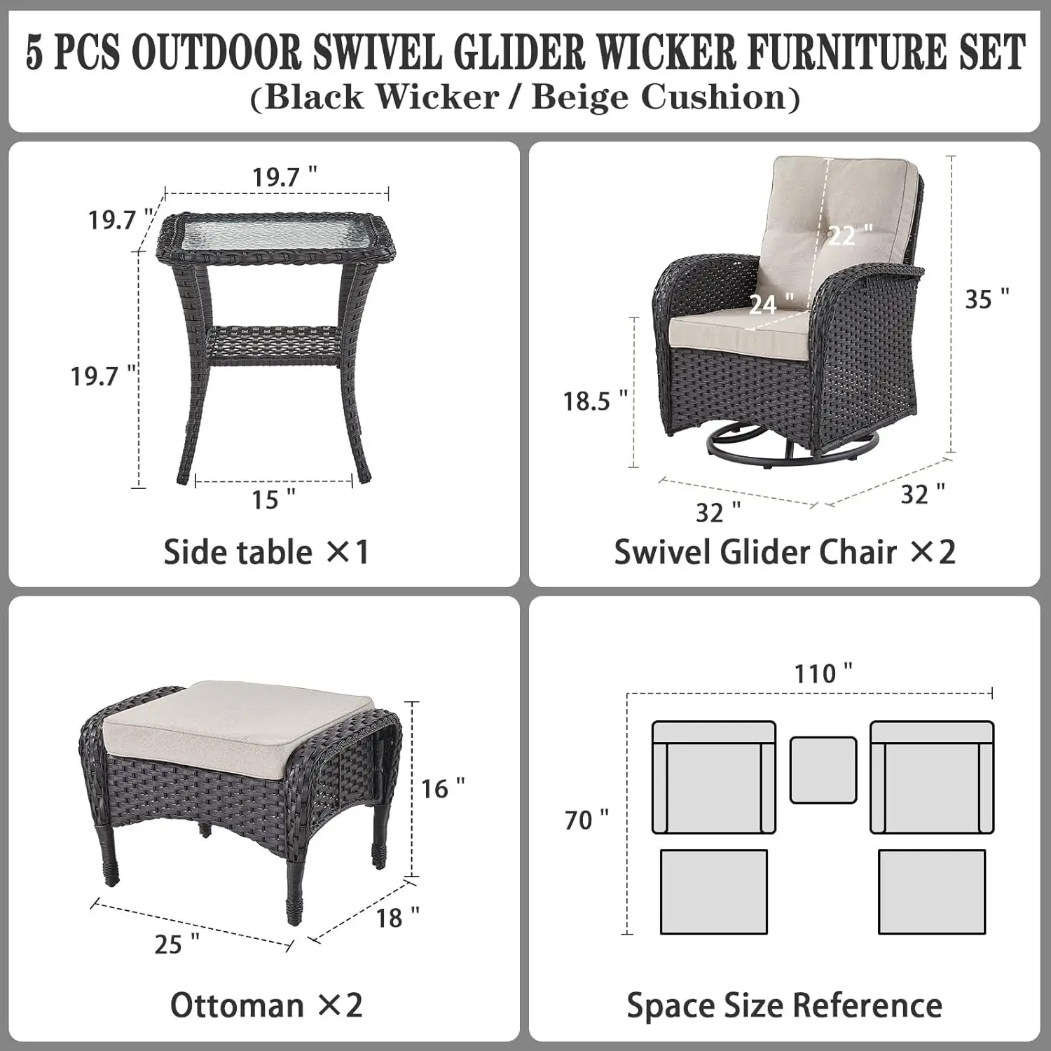 4. 4.LUXURIOUS OUTDOOR RETREAT ENSEMBLE: Relax in the beautiful outdoors with this perfect 5 pieces patio furniture set. Our patio swivel rocker chair set with high quality foam cushion, comfortable and soft rebound good. The cushion cover is made of olefin outdoor water-resistant fabric. The seat and backrest are made of beautifully woven wicker coupled with ergonomic design, making it a classic upgrade for any porch, deck or patio.