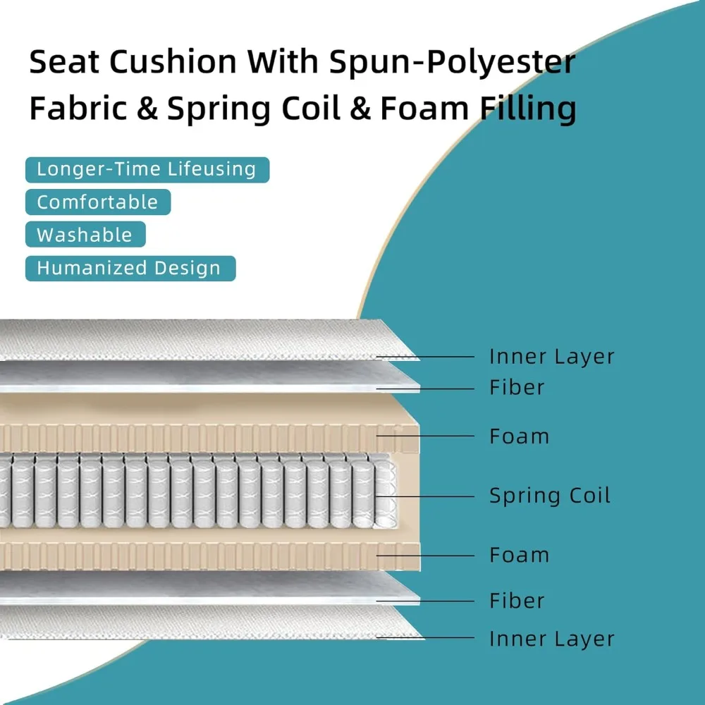 - [Comfortable Spring Coil 6.69 Inch HEIGHT Cushions] This outdoor conversation set equipped with soft seat cushions with spun-polyester fabric and Spring Coil and foam filling,greatly improved the cushion lifeusing time . Give you a comfortable seating experience. The seat cushion is come with a removable cover for easy cleaning and maintenance.5 Years Quality Guaranty)