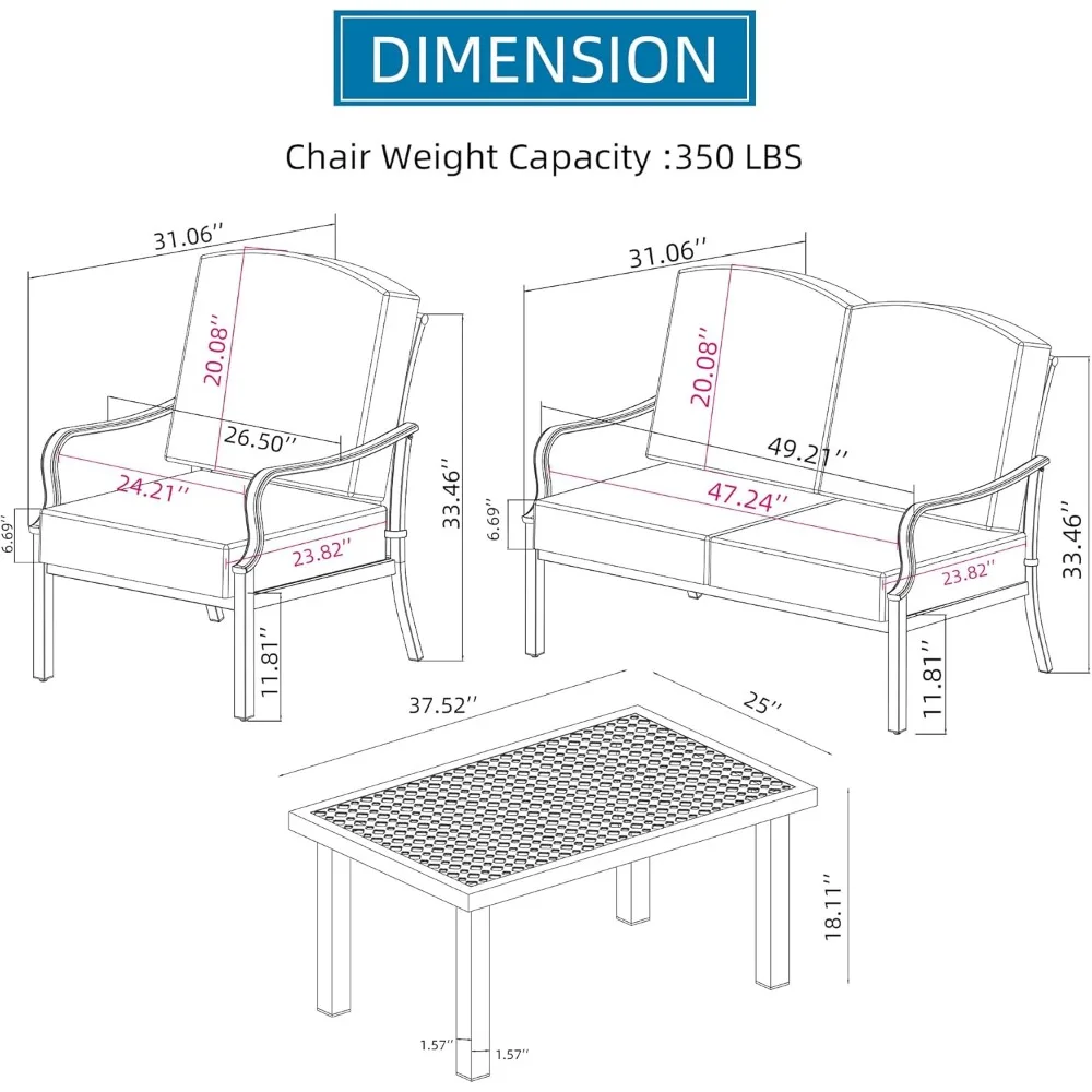 - [Sturdy And Durable Materials] The powder coated steel frame of is sturdy and this patio furniture setrust-proof , low Maintenance.