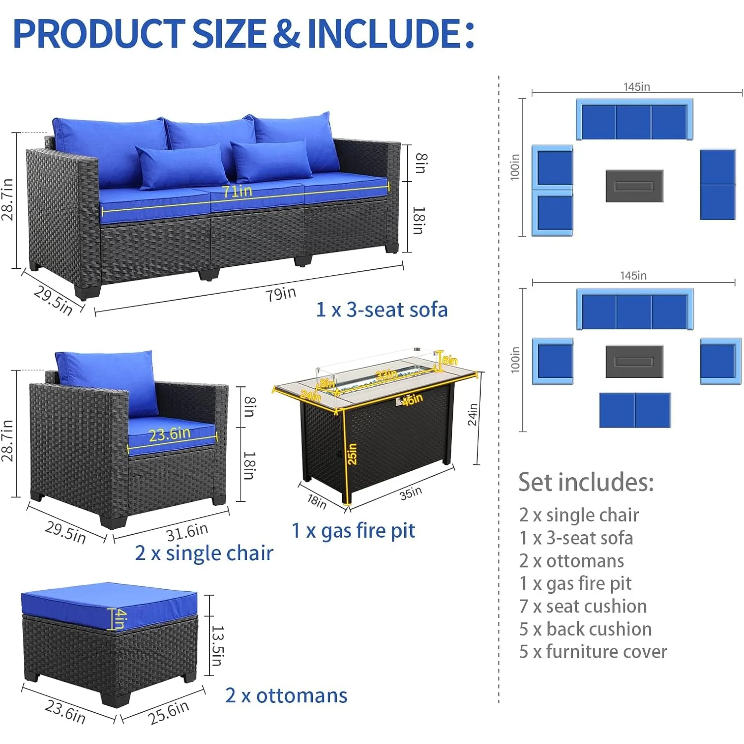 Highly Adaptable: outdoor couch set includes patio chairs, outdoor sofa, ottoman, and gas fire pit table; a graceful, breezy style that doesn’t compromise on comfort and durability; create your perfect configuration with easy options that are suitable for any decorative fashion and scene