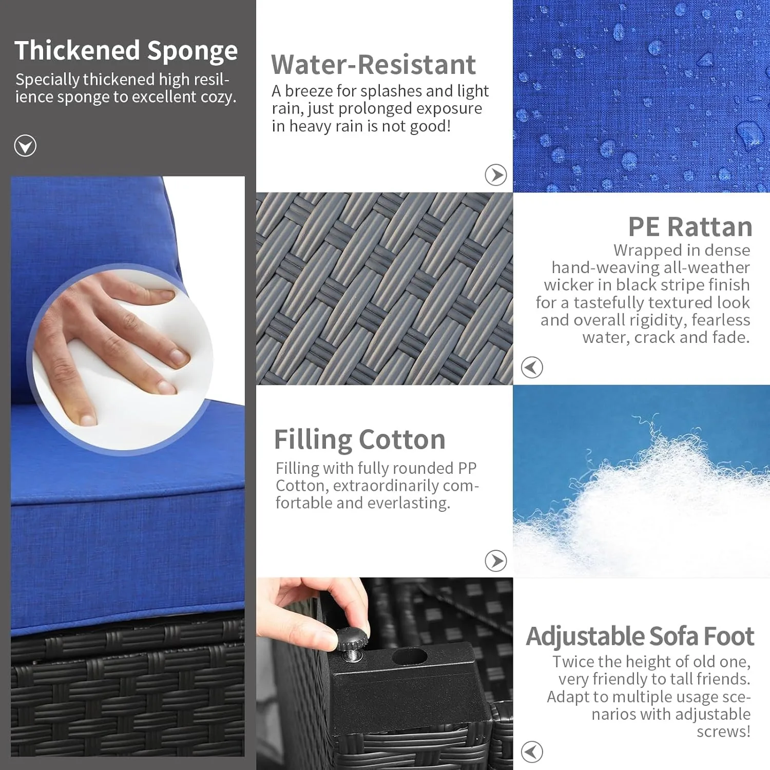 Comfortable and Non-slip: thickened seat cushions(4 inches) with high resilience sponge and bottom anti-slip dotted plastic fabric, anti-slip and practicality are wholly better than lacing, velcro or hook, match up filling back cushions, which is extraordinarily comfortable and everlasting with outdoor furniture sets